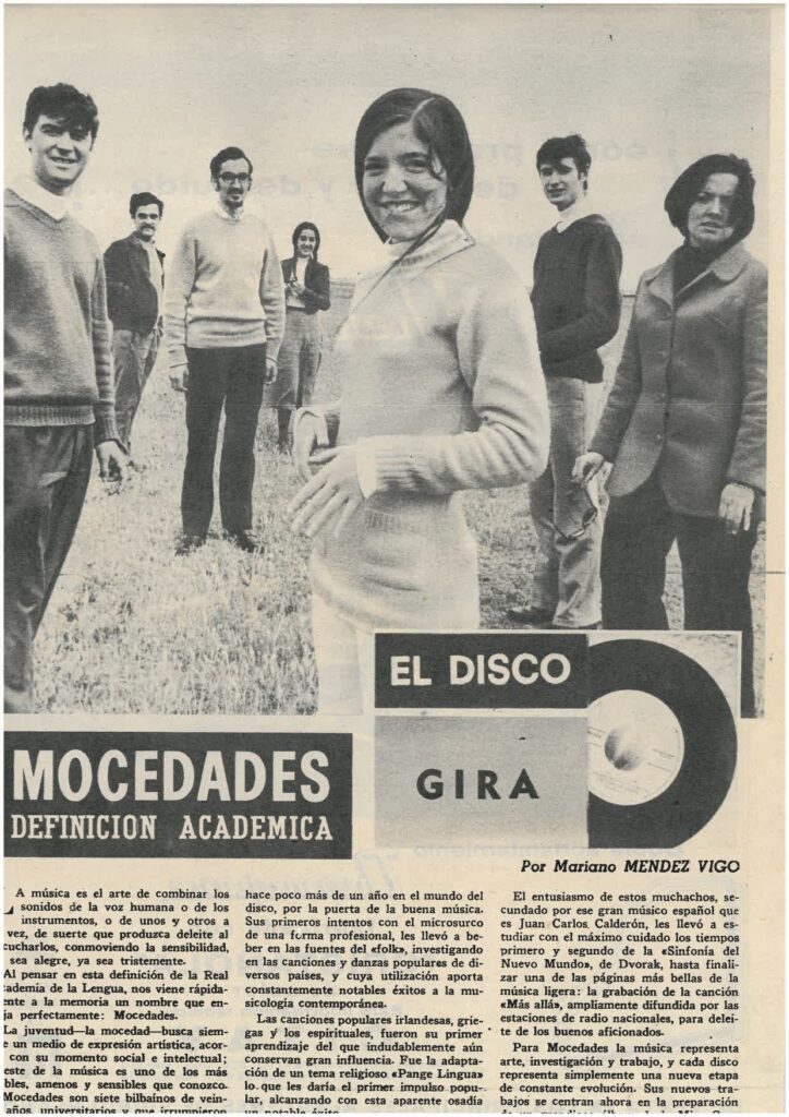 El primer LP de Mocedades es un compendio de canciones folk, procedentes sobre todo del folklore norteamericano en sus dos vertientes: la clásica y la de los cantautores de principios de los 60. A diferencia de otros grupos que se movían en los mismos sendero, tales como Nuestro Pequeño Mundo, este primer disco grande trae arreglos vocales algo más elaborados que lo acostumbraban los grupos del ramo, a pesar de moverse en un repertorio más o menos similar. Así incluyen un tema popularizado por New Christy Minstrels: “Miss Katy cruel”, una work song: “I want tobe ready”, tres espirituales: “Take my hand, precios Lord” y “Swing low, sweet chariot” y “Donna, donna”, que había sido santo y seña de Joan Baez. Entre el repertorio moderno de los folkies neoyorquinos hay que apuntar una versión casi eclesiástica de “The cruel war”, de Pete Seeger.